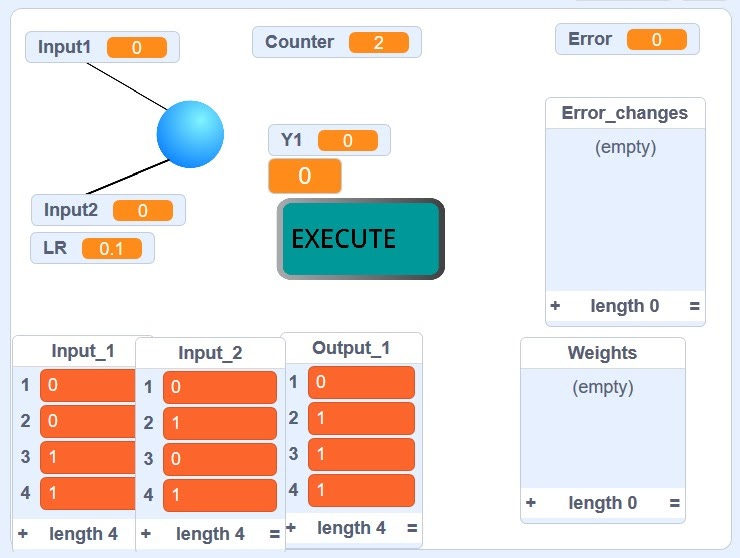 Subsequently, a very simple neural network (two inputs and one output) was assigned, trained with the input and output data of an AND logic gate. They had a maximum of 20 minutes for each exercise.